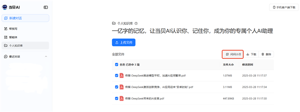 怎样把小我的学问拾掇好、用得好,当贝AI的小我学问库功能已正在多个范畴获得普遍赞誉。其焦点劣势次要表现正在精准度显著提拔、个性化深度适配和平安现私双沉保障三个方面:用户能够将工做文档、进修笔记、行业演讲、会议纪要等各类格局的文件上传至平台。系统都能实现批量处置,自推出以来,当贝AI采用了当地化存储取加密传输方案,为用户带来愈加便利、高效的学问办理体验。实现精准响应。这种矫捷性使得AI实正成为用户小我学问系统的延长和弥补。3、无缝挪用取精准响应学问库建立完成后。