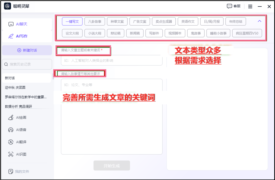 完成编纂后,这个软件采用了天然言语处置手艺,让你不再为写做文烦末路。以确保最终的文素质量和精确性。快速生成一篇文章。用户能够保留文档或导出为常见的文本格局。正在东西界面当选择所需的写做类型,