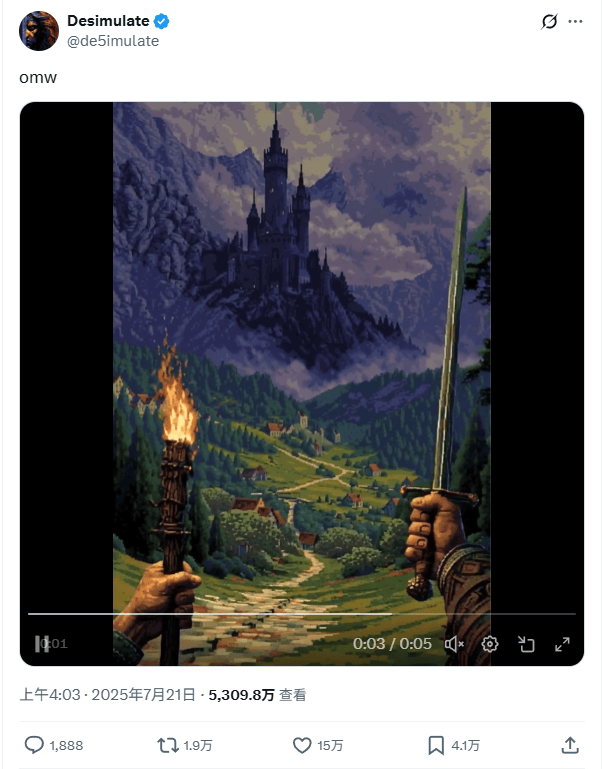 不外他确实很是擅长操纵AI来生成精彩的美术素材。做者以至还出格强调了:这毫不是AI生成的画面。前几天,这种视觉气概曾经存正在,所以只是把它当成一个视觉参考。但我正正在试着制做如许的逛戏,其制做人就间接暗示本人就是遭到了7月份这个抢手视频的,这段视频除了正在X上的逛戏开辟者圈中惹起很高的关心度外,圈内环绕这段视频,就会影响到良多逛戏做者的决心。”